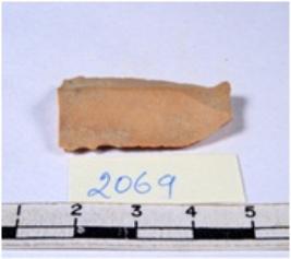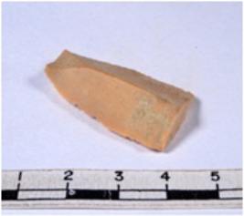 | Description / विवरण | A fragment of a rectangular shaped chert blade showing dorsal sides with sharp edges having smooth surface and triangular section. |