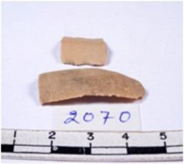 | Description / विवरण | A fragment of a rectangular shaped chert blade showing dorsal sides with sharp edges having smooth surface and triangular section. |