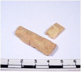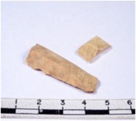 | Description / विवरण | A fragment of a rectangular shaped chert blade showing dorsal sides with sharp cutting edges having smooth surface and triangular section. |