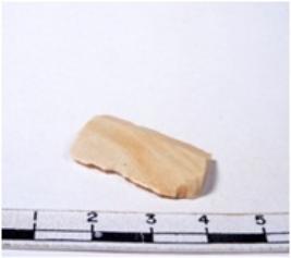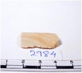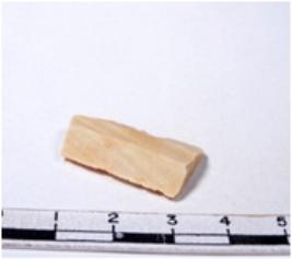 | Description / विवरण | A fragment of a rectangular shaped chert blade showing dorsal sides with sharp cutting edges having smooth surface and triangular section. |
