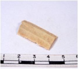 | Description / विवरण | A fragment of a rectangular shaped chert blade showing dorsal sides with sharp edges having smooth surface and triangular section. |