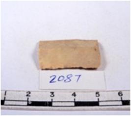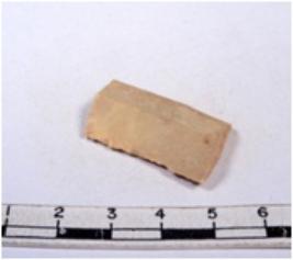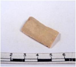 | Description / विवरण | A fragment of a rectangular shaped chert blade showing dorsal sides with sharp cutting edges having smooth surface and triangular section. |