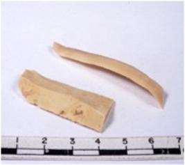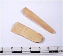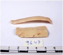 | Description / विवरण | A fragment of a rectangular shaped chert blade showing dorsal sides with sharp edges having smooth surface and triangular section. |