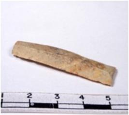 | Description / विवरण | A fragment of a rectangular shaped chert blade showing parallel sides with sharp edges having smooth surface and uneven section. |
