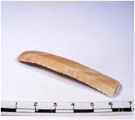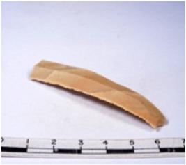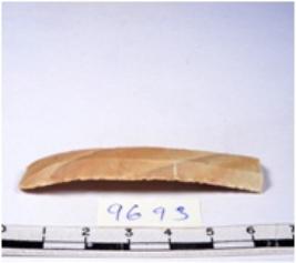 | Description / विवरण | A fragment of a rectangular shaped chert blade showing dorsal sides with sharp edges having smooth surface and triangular section. |