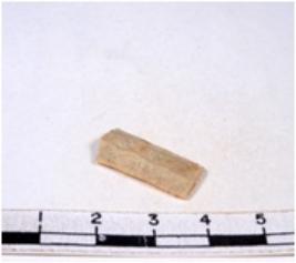 | Description / विवरण | A fragment of a rectangular shaped chert blade showing dorsal sides with sharp edges having smooth surface and triangular section. |