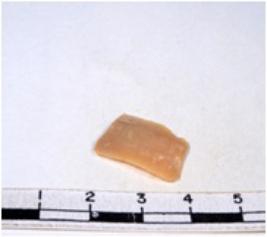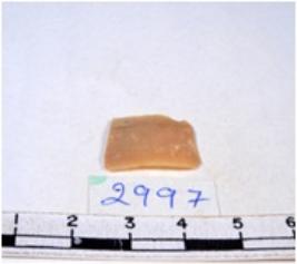 | Description / विवरण | A fragment of a rectangular shaped chert blade showing dorsal sides with sharp edges having smooth surface and triangular section. |