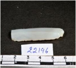 | Description / विवरण | A fragment of a rectangular shaped chalcedony blade showing dorsal sides with sharp cutting edges having smooth surface and triangular section. |