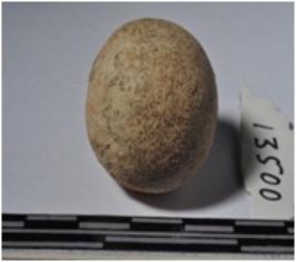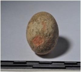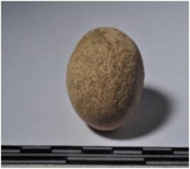 | Description / विवरण | A terracotta sling ball, round in shape and smooth surface. |