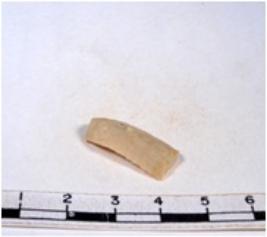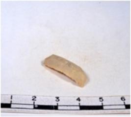 | Description / विवरण | A fragment of a rectangular shaped chert blade showing dorsal sides with sharp edges having smooth surface and triangular section. |