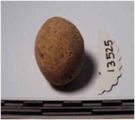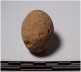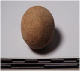 | Description / विवरण | A terracotta round in shape sling ball of smooth surface. |