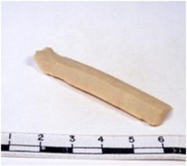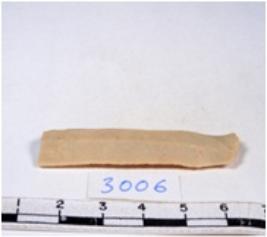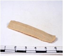 | Description / विवरण | A fragment of a rectangular shaped chert blade showing dorsal sides with sharp edges having smooth surface and uneven section. |
