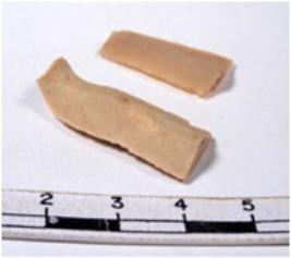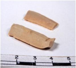 | Description / विवरण | A fragment of a rectangular shaped chert blade showing dorsal sides with sharp edges having smooth surface and triangular section. |