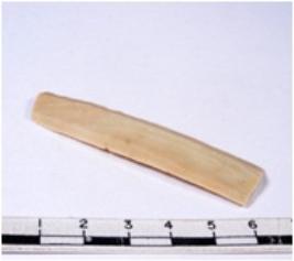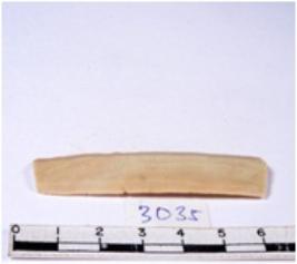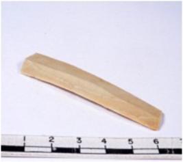 | Description / विवरण | A fragment of a rectangular shaped chert blade showing dorsal sides with sharp cutting edges having smooth surface and triangular section. |