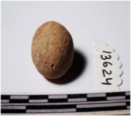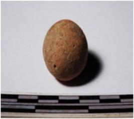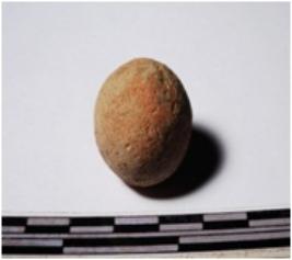 | Description / विवरण | A terracotta round in shape sling ball, circular in section of smooth surface. |