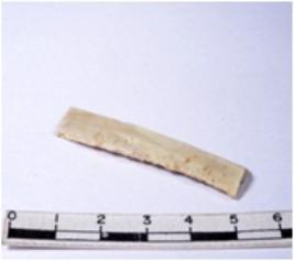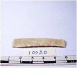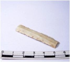 | Description / विवरण | A fragment of a rectangular shaped chert blade showing dorsal sides with sharp edges having smooth surface and triangular section. |