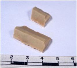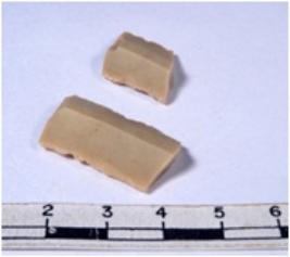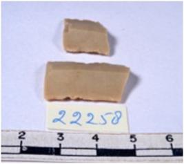 | Description / विवरण | A fragment of a rectangular shaped chert blade showing dorsal sides with sharp cutting edges having smooth surface and triangular section. |