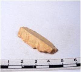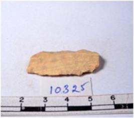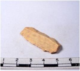 | Description / विवरण | A fragment of a rectangular shaped chert blade showing dorsal sides with sharp edges having smooth surface and triangular section. |