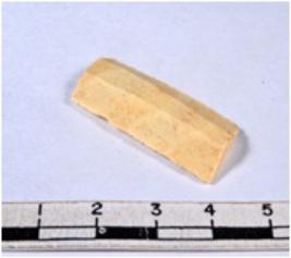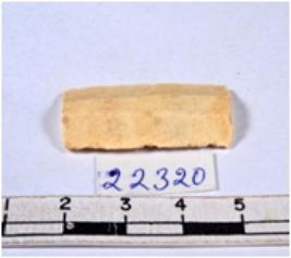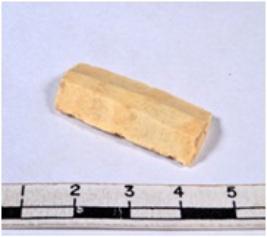 | Description / विवरण | A fragment of a rectangular shaped chert blade showing dorsal sides with sharp edges having smooth surface and triangular section. |