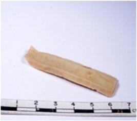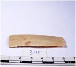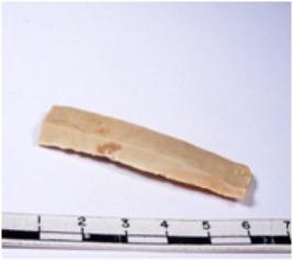 | Description / विवरण | A fragment of a rectangular shaped chert blade showing dorsal sides with sharp edges having smooth surface and triangular section. |