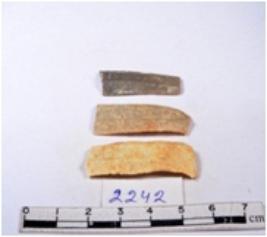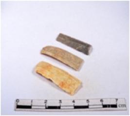 | Description / विवरण | A fragment of a rectangular shaped chert blade showing dorsal sides with sharp edges having smooth surface and triangular section. |