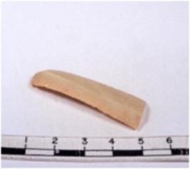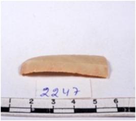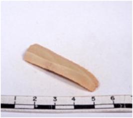 | Description / विवरण | A fragment of a rectangular shaped chert blade showing dorsal sides with sharp edges having smooth surface and triangular section. |