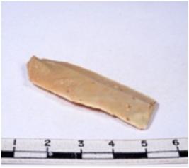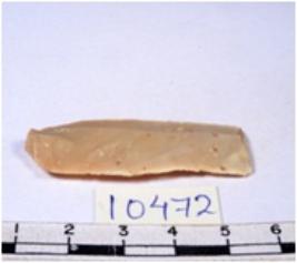 | Description / विवरण | A fragment of a rectangular shaped chert blade showing parallel sides with sharp cutting edges having smooth surface and triangular section. |