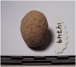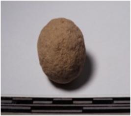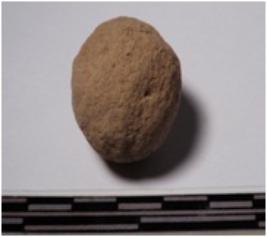 | Description / विवरण | A terracotta round in shaped sling ball of rough surface. |