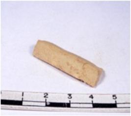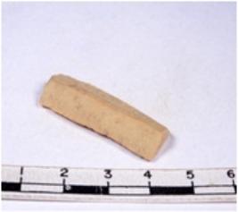 | Description / विवरण | A fragment of a rectangular shaped chert blade showing dorsal sides with sharp cutting edges having smooth surface and triangular section. |