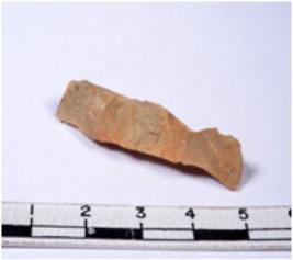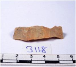 | Description / विवरण | A fragment of a rectangular shaped chert blade showing dorsal sides with sharp edges having smooth surface and triangular section. |
