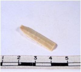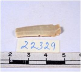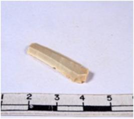 | Description / विवरण | A fragment of a rectangular shaped chert blade showing dorsal sides with sharp edges having smooth surface and triangular section. |