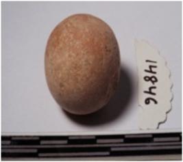 | Description / विवरण | A terracotta round in shaped sling ball of smooth surface. |