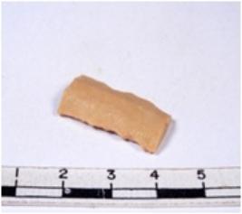 | Description / विवरण | A fragment of a rectangular shaped chert blade showing dorsal sides with sharp edges having smooth surface and triangular section. |
