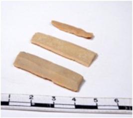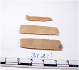 | Description / विवरण | A fragment of a rectangular shaped chert blade showing dorsal sides with sharp edges having smooth surface and triangular section. |