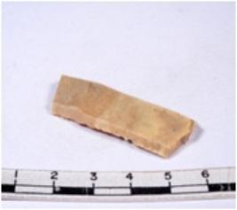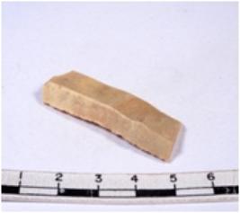 | Description / विवरण | A fragment of a rectangular shaped chert blade showing dorsal sides with sharp cutting edges having smooth surface and triangular section. |