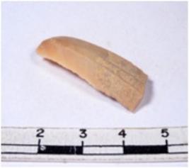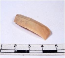 | Description / विवरण | A fragment of a rectangular shaped chert blade showing dorsal sides with sharp cutting edges having smooth surface and triangular section. |