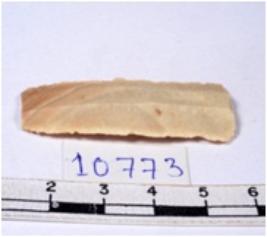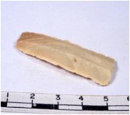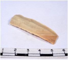 | Description / विवरण | A fragment of a rectangular shaped chert blade showing parallel sides with sharp edges having smooth surface and uneven section. |