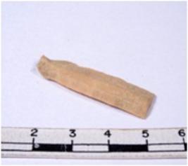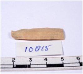 | Description / विवरण | A fragment of a rectangular shaped chert blade showing dorsal sides with sharp edges having smooth surface and triangular section. |