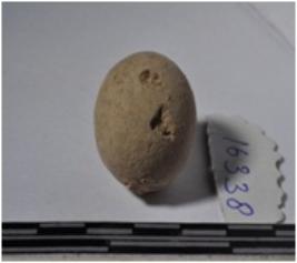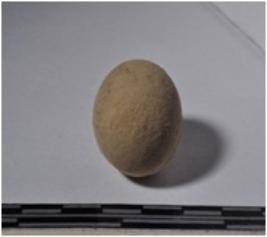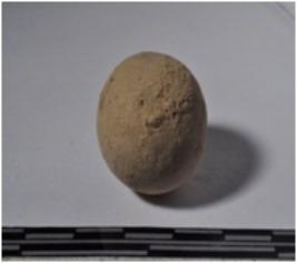 | Description / विवरण | A terracotta sling ball round in shape of smooth surface. |