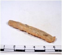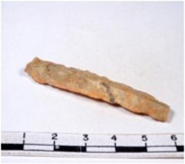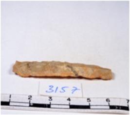 | Description / विवरण | A fragment of a rectangular shaped chert blade showing dorsal sides with sharp edges having smooth surface and triangular section. |