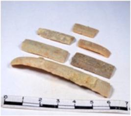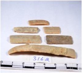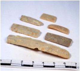 | Description / विवरण | A fragment of a rectangular shaped chert blade showing dorsal sides with sharp edges having smooth surface and triangular section. |