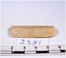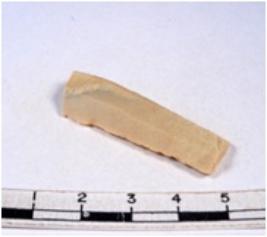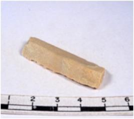 | Description / विवरण | A fragment of a rectangular shaped chert blade showing parallel sides with sharp edges having smooth surface and triangular section. |