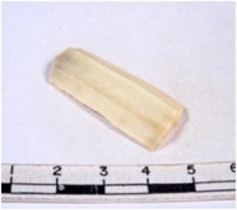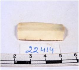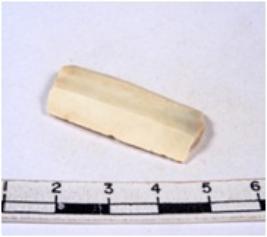 | Description / विवरण | A fragment of a rectangular shaped chert blade showing parallel sides with sharp cutting edges having smooth surface and uneven section. |