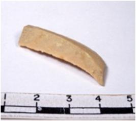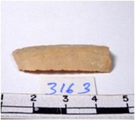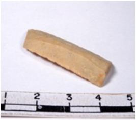 | Description / विवरण | A fragment of a rectangular shaped chert blade showing dorsal sides with sharp cutting edges having smooth surface and triangular section. |