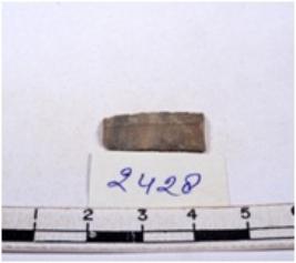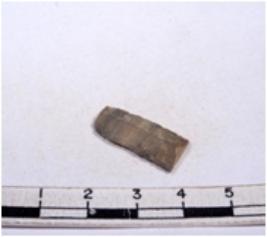 | Description / विवरण | A fragment of a rectangular shaped chert blade showing dorsal sides with sharp edges having smooth surface and triangular section. |