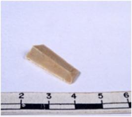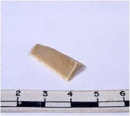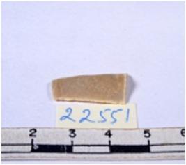 | Description / विवरण | A fragment of a rectangular shaped chert blade showing dorsal sides with sharp edges having smooth surface and triangular section. |