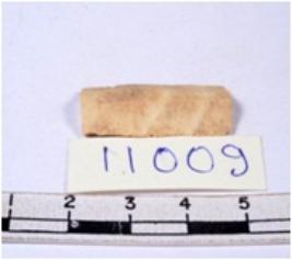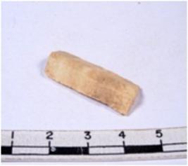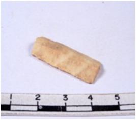 | Description / विवरण | A fragment of a rectangular shaped chert blade showing dorsal sides with sharp cutting edges having smooth surface and triangular section. |