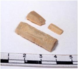 | Description / विवरण | A fragment of a rectangular shaped chert blade showing dorsal sides with sharp cutting edges having smooth surface and triangular section. |