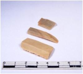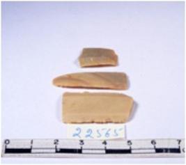 | Description / विवरण | A fragment of a rectangular shaped chert blade showing dorsal sides with sharp cutting edges having smooth surface and triangular section. |