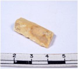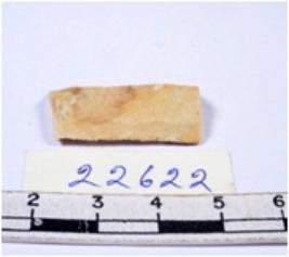 | Description / विवरण | A fragment of a rectangular shaped chert blade showing dorsal sides with sharp edges having smooth surface and triangular section. |